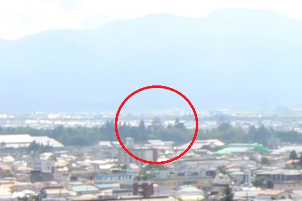 その奥にあるのが白虎隊自刃の場で、遠くに小さく鶴ヶ城が見えます。それも言われなければ気が付かない大きさで。あそこからの煙で、ですか・・・