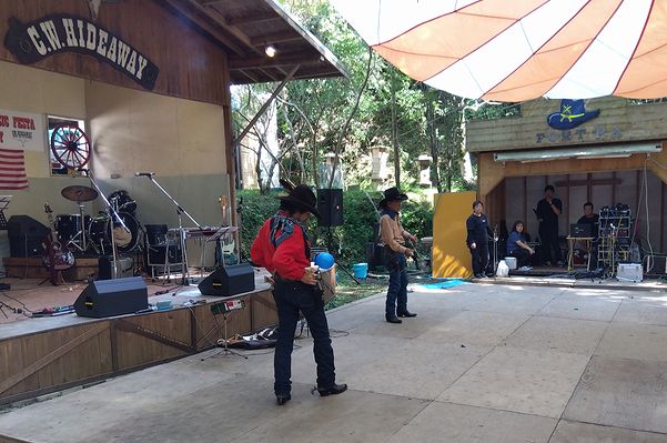| いざ出陣! 今日はいよいよ九州初ライブ。ゆんべが不完全燃焼だった分、体力気力ともに十分。起きたときから腹減ってます!ってそっちかい!(笑) ![]() AZホテルの朝食は概ねどこも一緒。でも必要にして十分。特にこっちのはたらこ明太子がありがたいですねぇ。で朝はこの設え。お代わりガマンするのに苦労します。さぁ、食ったら分乗して出陣です!まぁ、すぐ近くなんですけどね。 ![]() ぽつんと一軒家のフェス ![]() 9時過ぎに会場入りしましたが、さすがはポツンと一軒家にも出ただけのことはある、すばらしい施設でびっくり!同好の士が集まって作ったそうですが、私が以前参加してた佐倉のグループフロンティアのはるか上をいってます。 ![]() これがその参加証。手作り感満載でおしゃれ!いやぁすんげぇとこ! ![]() お、始まりました!ダンサーもいっぱい!出番まだ先だし、ゆるりと見物して楽しませていただきましょう。 ![]() ガンマンのショーもあります。拳銃落としちゃうのもご愛敬(笑) ![]() 撃たれて倒れてもショーのうち。 ![]() その間に我々のセッティングを。 ![]() そして我々"The Priglims"登場! |